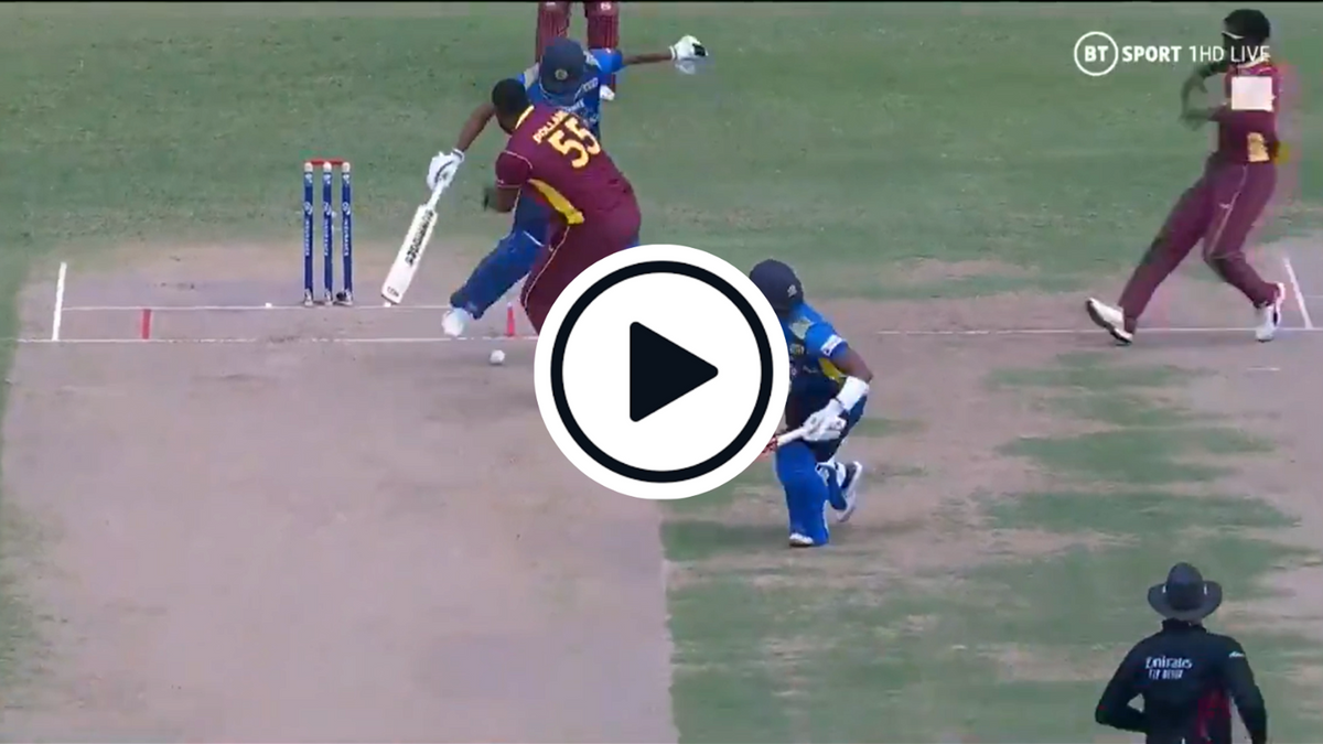 Pollard had continued in his follow-through to field the ball, sensing a chance for a run out, with the non-striker a distance down the pitch. However, as he went to gather, Gunathilaka stepped backwards, preventing Pollard from collecting the ball with his foot.