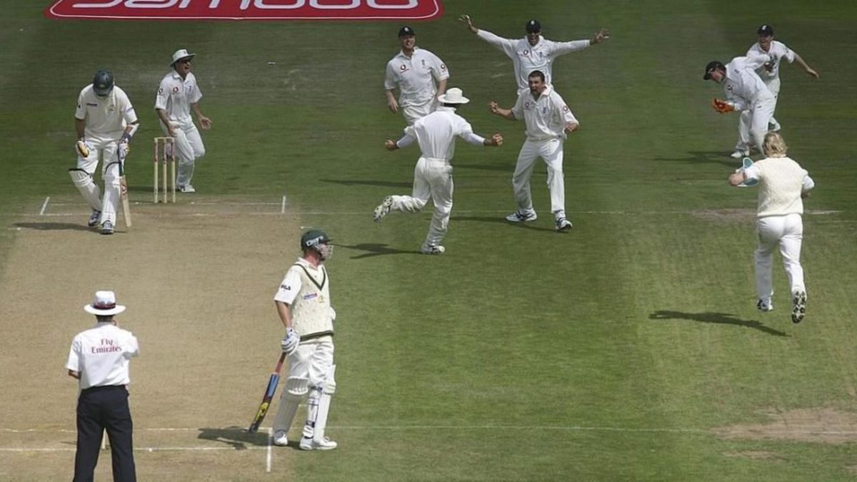 The Champions Trophy Final 2004. At The Oval, the West Indies needed 37 off 43, with two wickets in hand. Flintoff steamed in, bowled it full, straight and quick, beating Courtney Browne’s flick and striking him on the crease in front of middle stump. Umpire Simon Taufel detected an inside-edge, but replays suggested otherwise, and Browne and Ian Bradshaw went on to seal a famous victory. England are still waiting to win a global 50-over trophy.