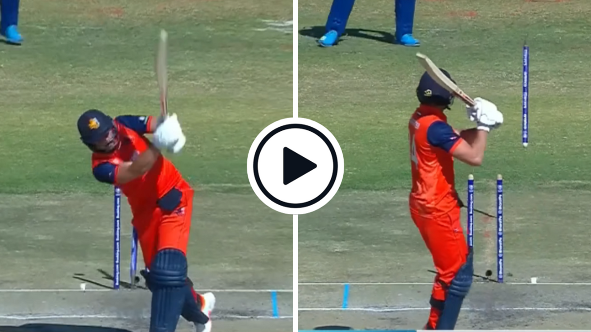 Watch: Dilshan Madushanka sent Netherlands veteran Wesley Barresi’s middle stump cartwheeling with a big, booming in-swinger to the right-hander in the World Cup Qualifier Final today (July 09).