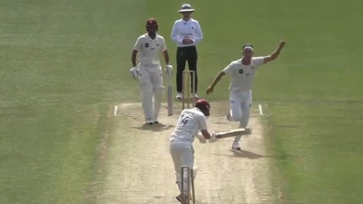 Robert O’Donnell edged the ball after that to Curtis Heaphy in the slip cordon. Kristian Clarke blocked the next ball, but it bounced and rolled back to the stumps, evading Clarke’s desperate attempt to swat it away.