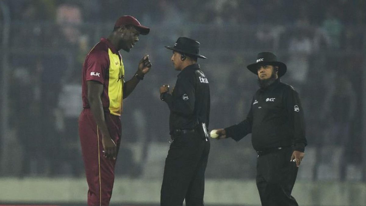 Play was halted for eight minutes after Ahmed, for the second time in the same over, wrongly pulled up Oshane Thomas for a no-ball even though he had his foot behind the line on both occassions. The second instance also cost Windies a wicket as Liton Das had holed out, and that prompted their skipper Carlos Brathwaite raise a protest with the umpire after seeing the replay on the big screen.