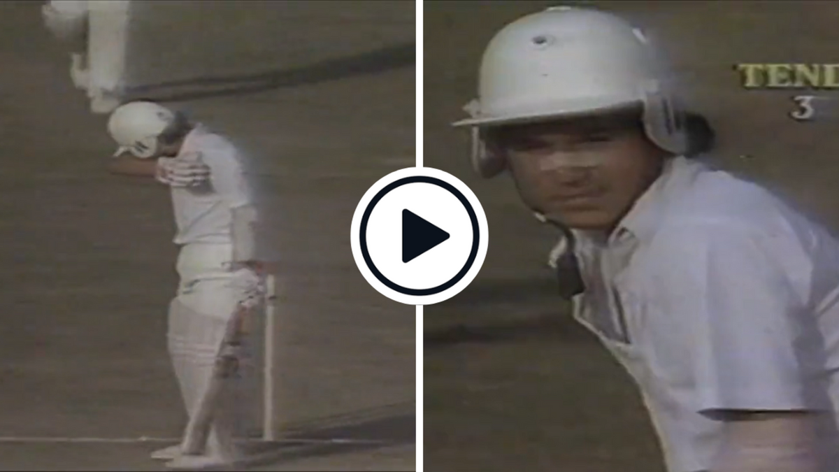 Watch: At Sialkot in 1989/90, Sachin Tendulkar recovered after being hit by a Waqar Younis bouncer to score a fifty and help India save the Test match against Pakistan.