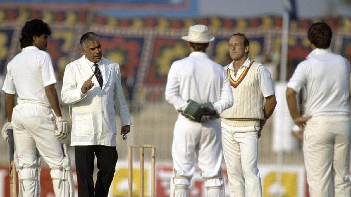 The umpire accused Gatting of cheating, stating, “You’re waving your hand. That’s cheating.” The charge was that Gatting was attempting to change the field as the bowler was running in, which would be against the laws of the game. Gatting responded that he was instead asking the fielder to stop and not move, and thus the accusations against him were untrue. Pakistan batter Salim Malik defended Gatting, but Rana would have none of it.