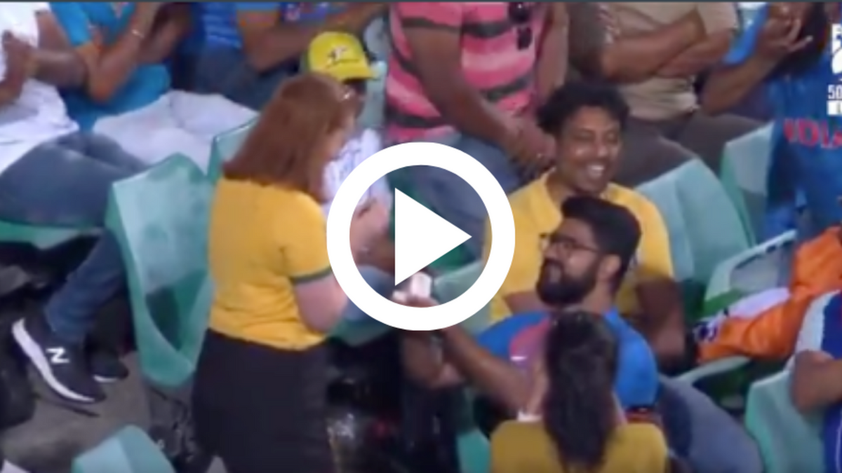 As India tried to crawl their way back into the series in the second ODI, chasing a mammoth total of 390, a fan, wearing India colours, found the perfect opportunity to propose to his girlfriend, who was donning the Australia jersey. The episode unfolded just before the 21st over of India’s chase, catching the attention of cameramen even as Virat Kohli and Shreyas Iyer were pushing India closer to the target.