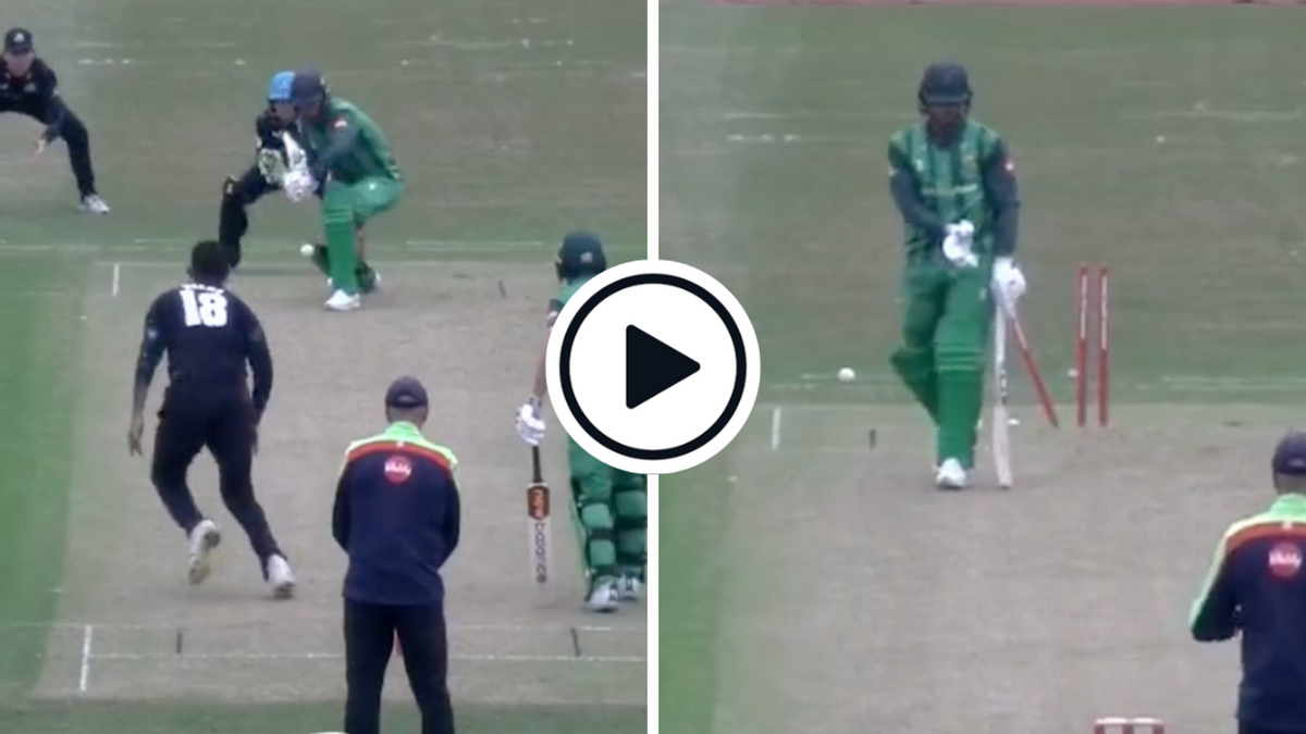 The very next ball, Mir grabbed his fourth from Michael Finan, bowling the pick of the lot. The ball turned in from outside off stump and went in between Finan’s bat and pad to take out middle and off.
