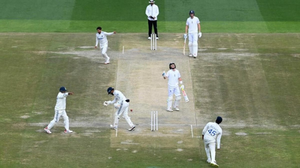 Ben Duckett and Zak Crawley start steadily before a loose shot hands India an opening. Ollie Pope fails to battle through a skittish start, Joe Root is outdone by one of India’s champions, Jonny Bairstow’s counter runs out of steam just as it threatens to turn into something significant, Ben Stokes gets stuck against spin and Ben Foakes is rudderless with the tail before, on this occasion at least, a welcome change in approach after Tea.
