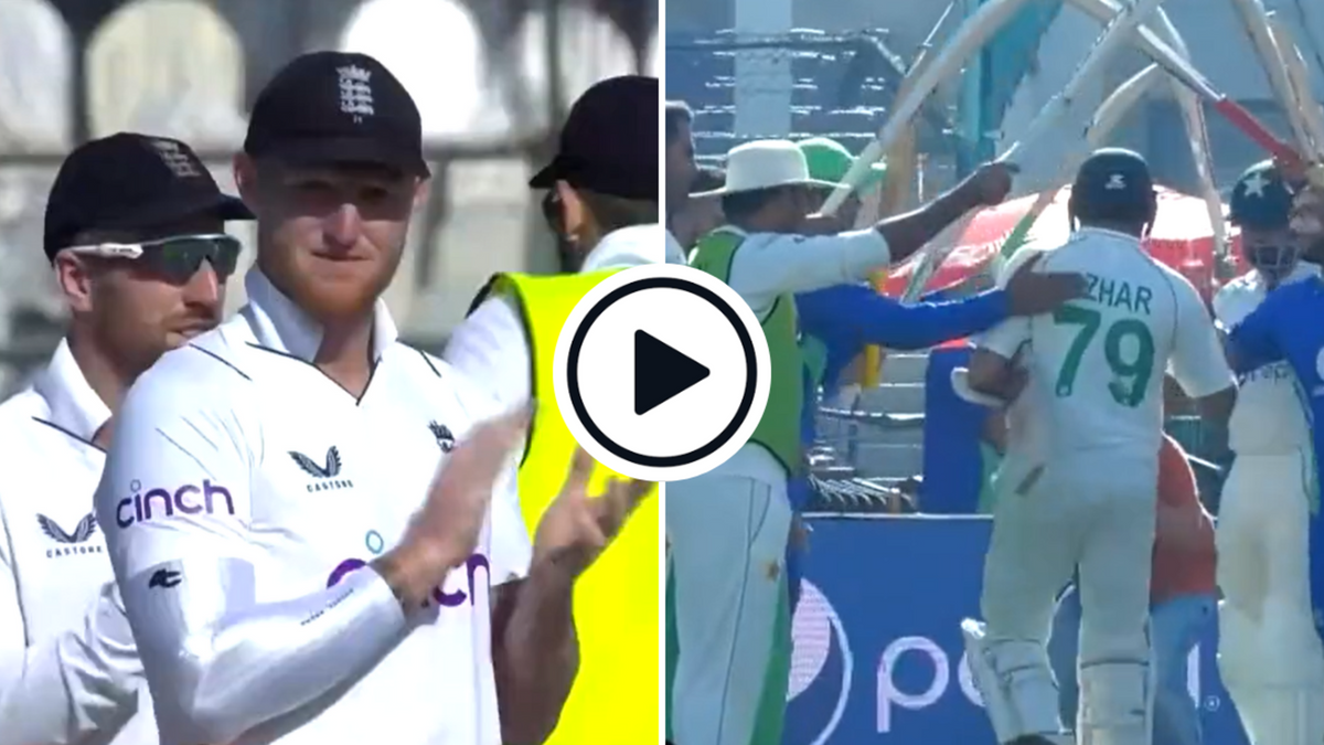Azhar had scored 45 in the first innings before Ollie Robinson had him caught behind down the leg side. In the second innings, he walked out to bat on the third morning shortly after Pakistan openers Abdullah Shafique and Shan Masood had erased the first-innings deficit of 50 runs. They were ahead by three when Masood (24) was bowled, trying to reverse-sweep Jack Leach, and Azhar walked out.
