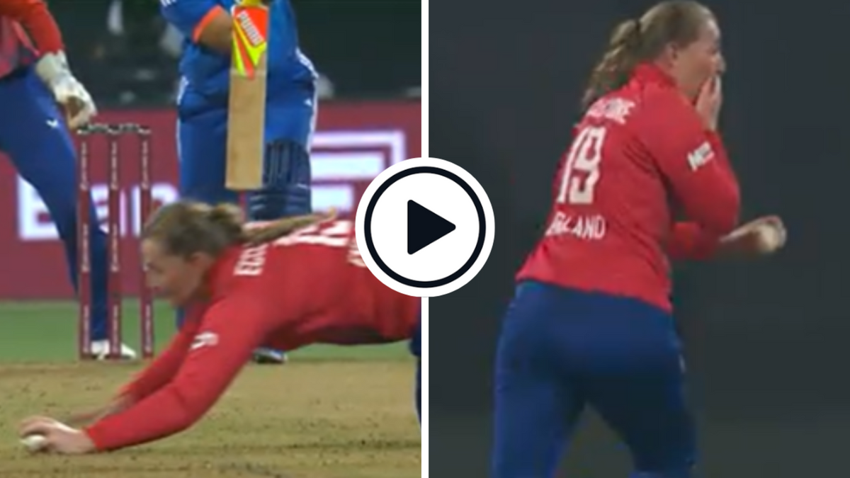 Watch: Sophie Ecclestone claimed a diving one-handed catch in her follow through to dismiss wicketkeeper Richa Ghosh during the second India-England T20I on Saturday (December 9).