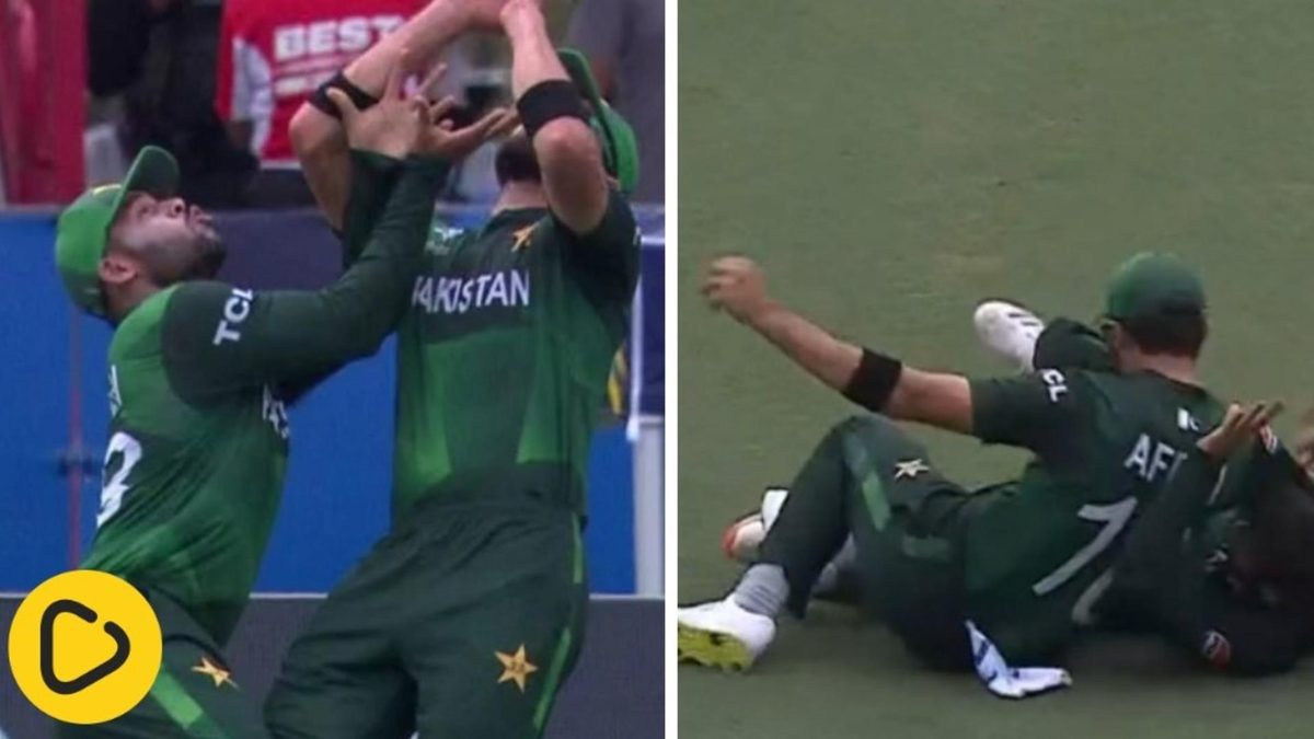 Watch: Shaheen Shah Afridi and Usman Khan suffered a nasty clash in the field during Pakistan’s final match of the T20 World Cup v Ireland, both falling to the ground.