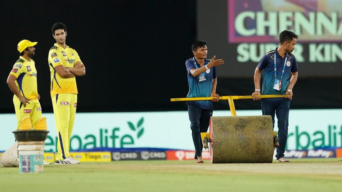 The rain has stopped, but despite the hard work put in by the ground staff, overs are almost certain to be deducted. As per the Laws of Cricket, Chennai need to bat for at least five overs for a match to happen, of which they have faced three balls.