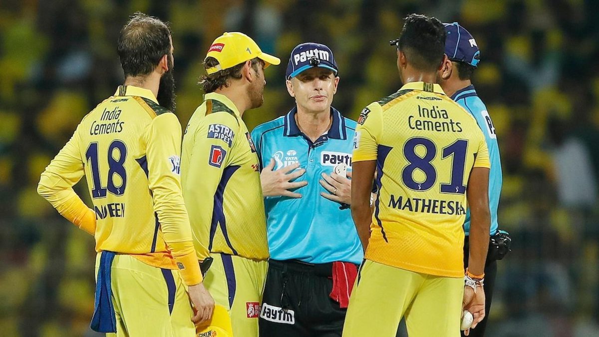 As Pathirana prepared to bowl, Anil Chaudhary, the umpire at the bowler’s end, had a word with him. Dhoni, meanwhile, approached square-leg umpire Chris Gaffaney.
