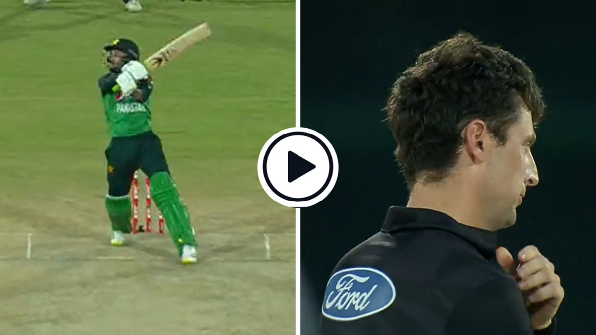 Watch: Mohammad Haris produced a stunning shot off Matt Henry that flew over the deep point fence for six during Pakistan’s fourth ODI against New Zealand at Karachi on Saturday (May 5, 2023).