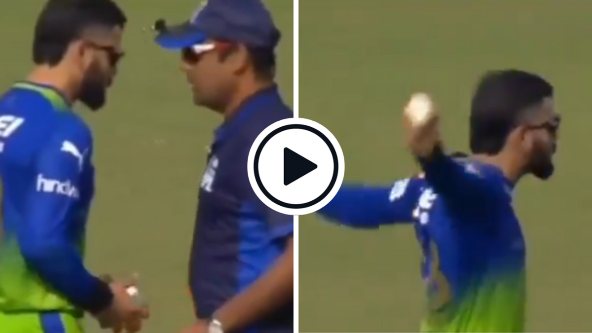 Watch: Virat Kohli teased the Eden Gardens crowd at the start of today’s IPL 2024 match between KKR and RCB by marking his bowling run-up and handing over his cap to the umpire.