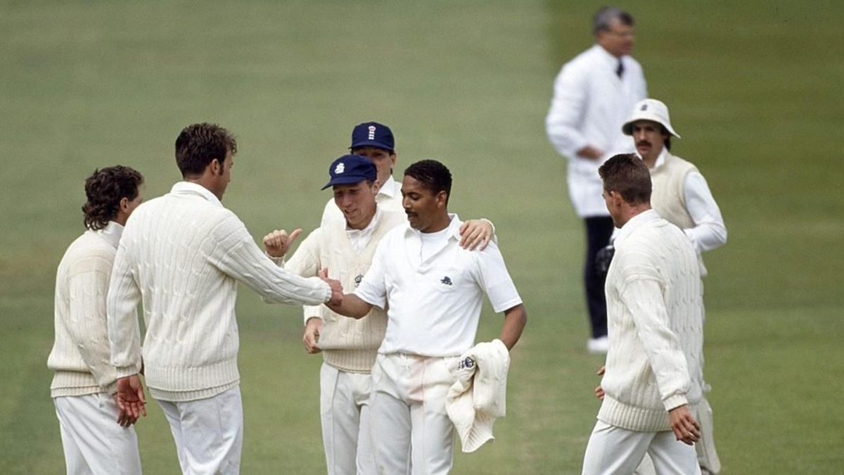 In the six Tests in 1991, DeFreitas took 30 wickets at an average of just 19.06, including career-best figures of 7-70 against the Sri Lankans at Lord’s in their solitary Test match. His contribution to England’s morale-boosting victory over the West Indians in the opening Test, at Headingley, was match figures of 8-93; and having reduced West Indies to 24-3 in the second innings of the fourth Test, at Edgbaston, he came within a millimetre of immediately dismissing Richards, who went on to steer his team home and ensure that they could not lose the rubber.
